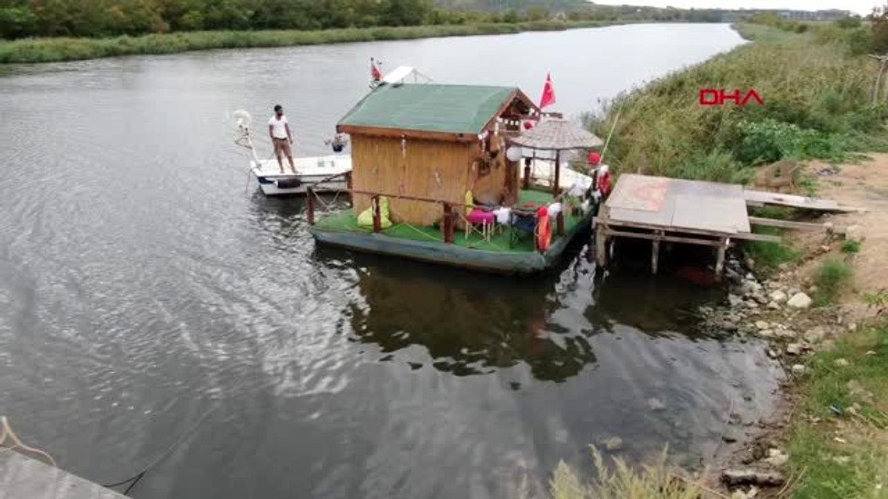 hamdullah aksoy bir hafriyatci istanbul un kalabaligindan trafiginden kacmak icin riva deresi uzerine kendi emekleriyle 15 gunde yuzen ev yapti fotografcilarin gezginlerin ilgi odagi olan bu evde huzuru mutlulugu buldugunu soyluyor haber